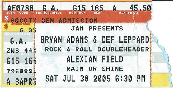 BRYAN ADAMS / 7-30-05 (ALEXIAN FIELD) WITH DEF LEPPARD & RANDY COLEMAN
